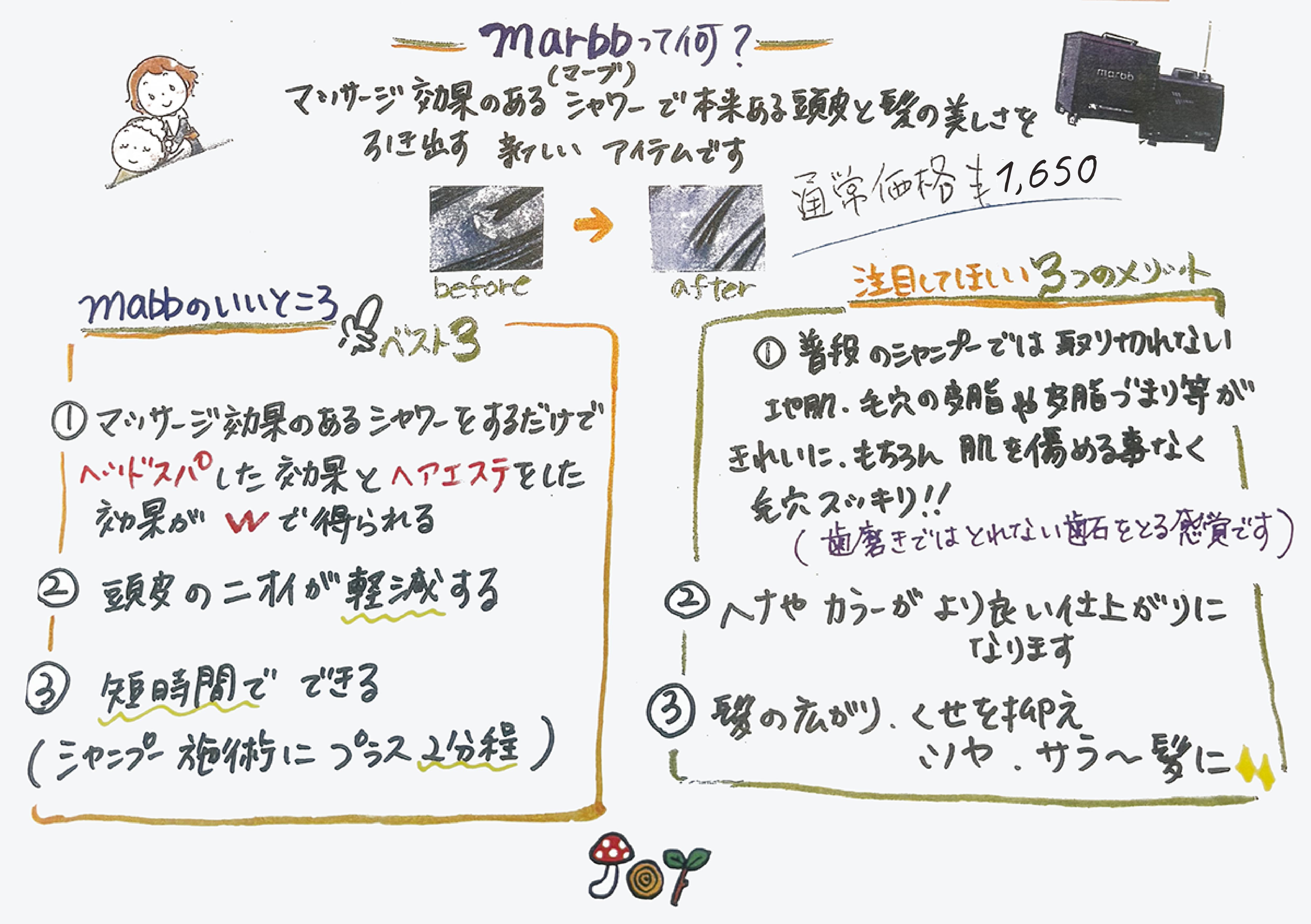 髪の痛みが目立ちパサパサでしたが、マーブのおかげで頭皮の臭いが気にならなくなり、髪の毛も落ち着いたように思います!